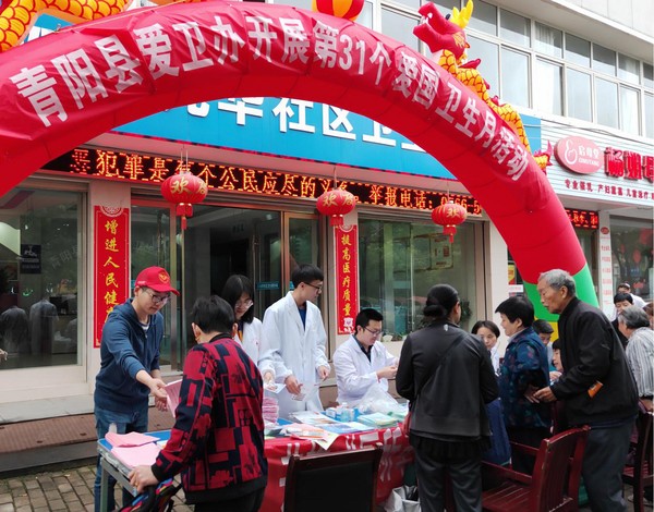 当天上午,县总工会志愿者和县爱卫办等单位的志愿者一道带着宣传资料,在九华社区卫生服务站门前设立服务台,向过往群众宣传厕所卫生知识,接受群众的咨询。通过发放宣传单和咨询服务,让更多群众了解“厕所革命”,倡导群众爱护环境、健康生活,引导群众养成健康文明的生活习惯,改善环境卫生状况,以崭新面貌迎接新中国成立70周年。