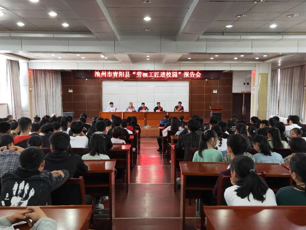 4月24日,池州市暨青阳县总工会劳模工匠进校园报告会在池州市旅游学校举办。池州市总工会党组成员、副主席姚国庆,劳动和经济工作部部长苏朋乐,权益保障部部长何臣,县总工会党组书记、副主席谢立新,池州市旅游学校校长陶春出席报告会。全校师生共约200人聆听报告会。