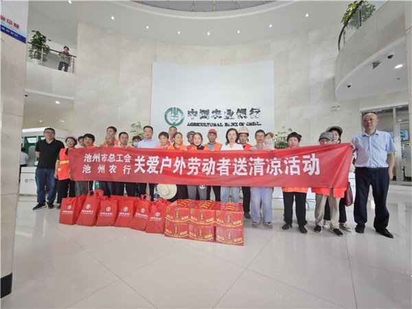 为进一步深化推动新业态劳动者建会入会工作,做好高温天气下户外劳动者防暑降温工作,保障广大户外劳动者的安全健康。7月9日上午,池州市总工会、池州农行在农行工会驿站联合开展关爱户外劳动者送清凉活动,近30余名户外劳动者参加活动。