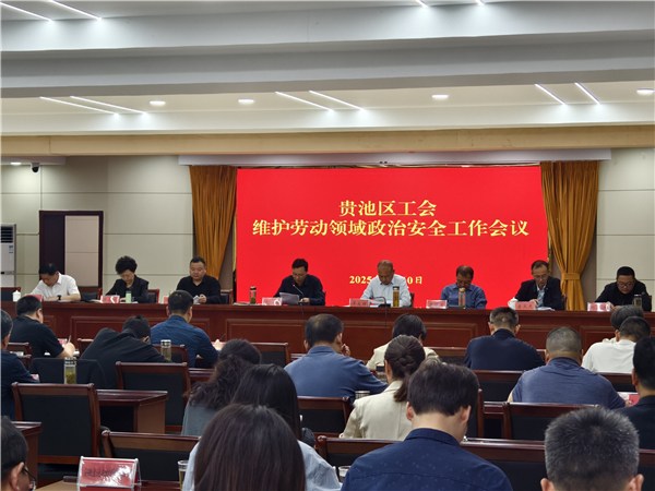 4月10日,贵池区总工会召开维护劳动领域政治安全工作会议,区总工会主席尤兵出席会议并讲话,区总工会党组书记汪发祥主持会议。区总工会领导班子成员,池州高新区、杏花村文化旅游区工会主要负责同志,各系统工会主要负责同志,各镇、街分管工会领导,国有企业工会主席,部分新兴领域民营企业工会主席参加会议。